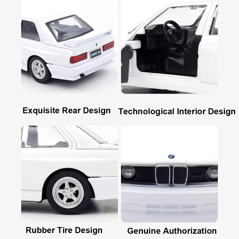 1/36 BMW M3 Alloy Toys Car Model 1987 Metal Diecasts Toy Vehicles for Kids. Pull Back 2 Door Open Authentic Exquisite Interior Collection Kids Toy for Children Aged 3 and up.