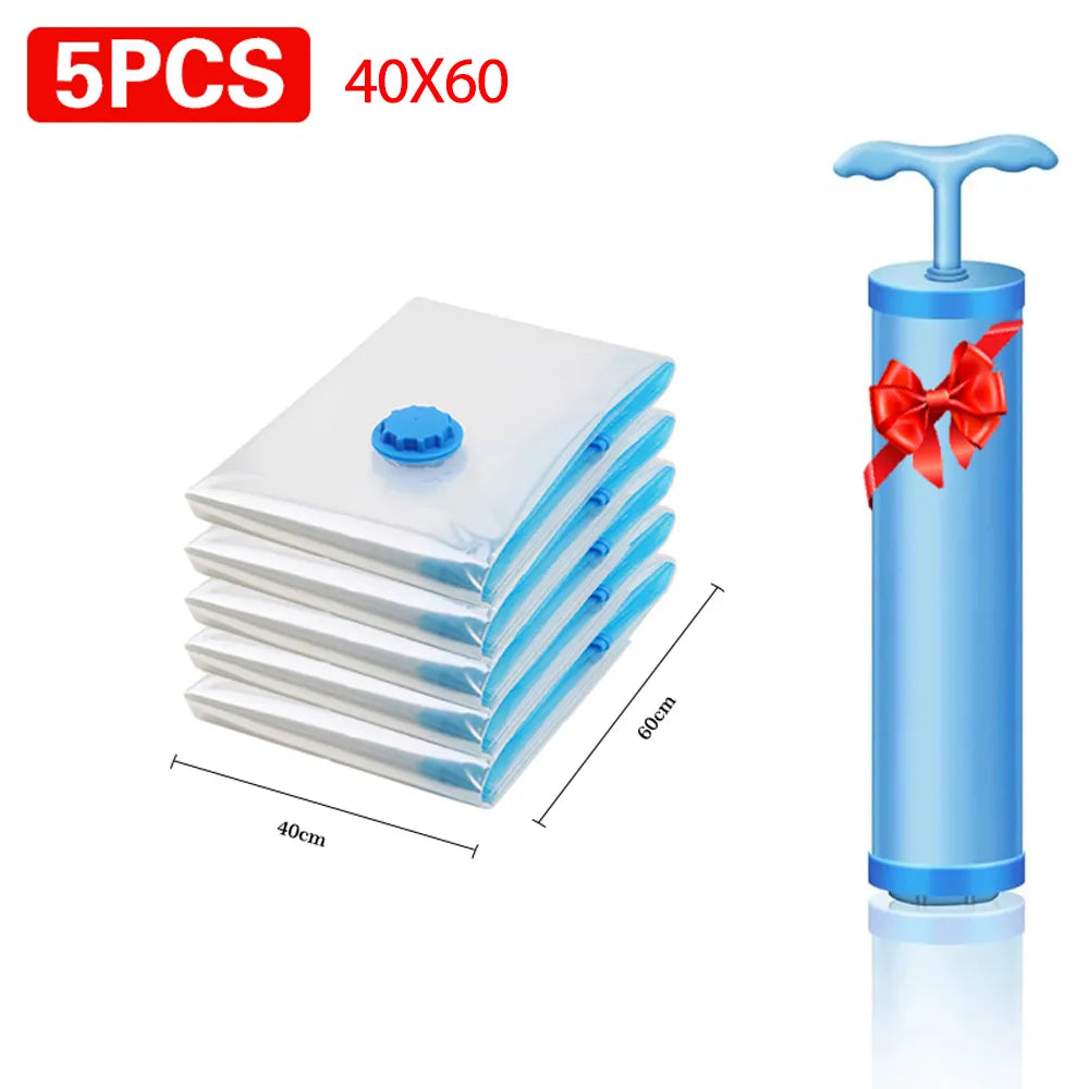 5Pcs Vacuum Storage Bags Vacuum Seal Bag Space Saving Bags for Comforters Clothes Pillow Bedding Blanket Storage