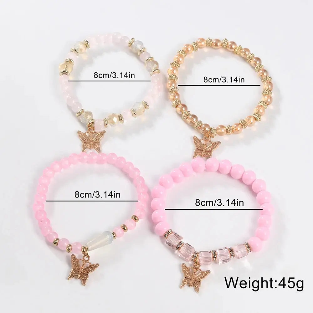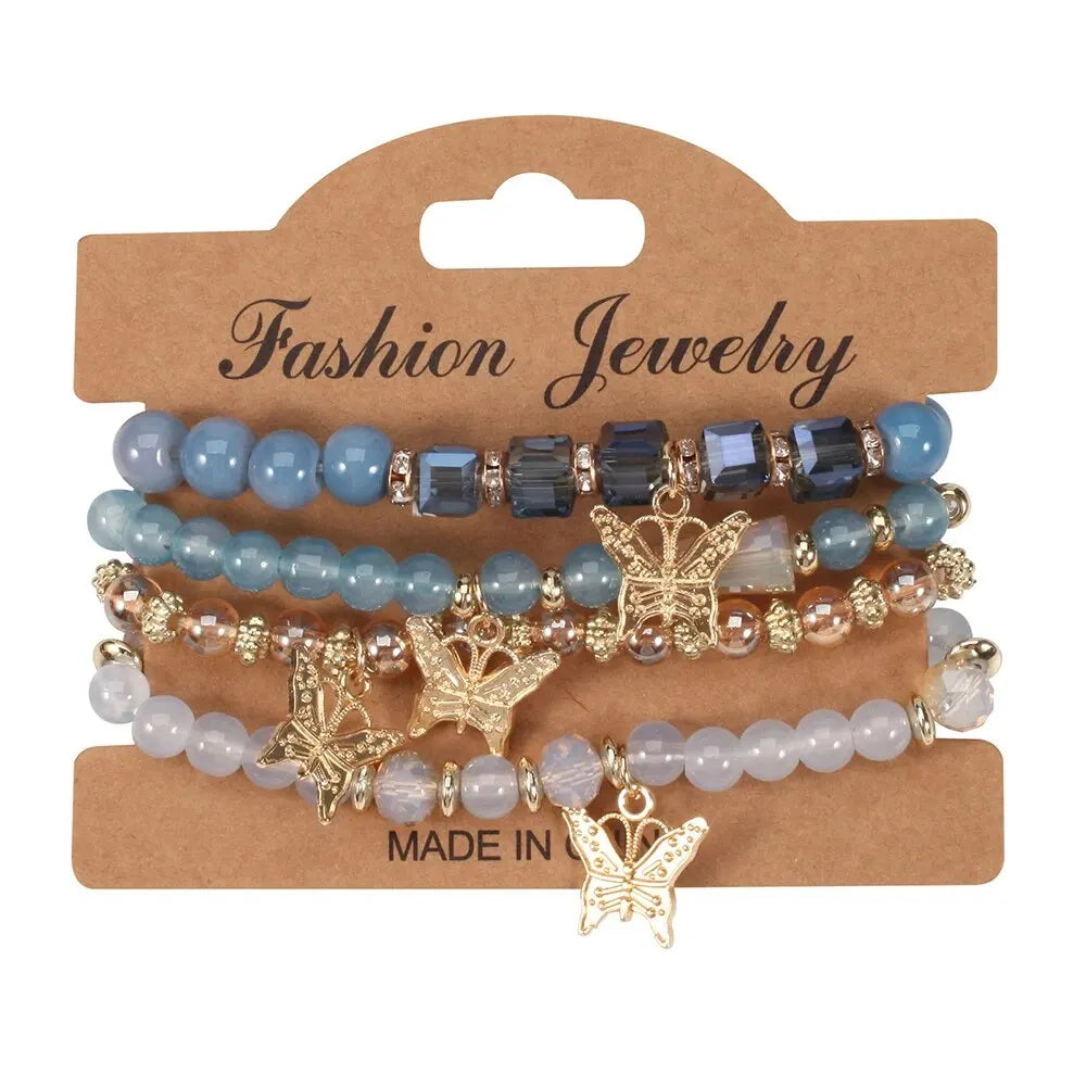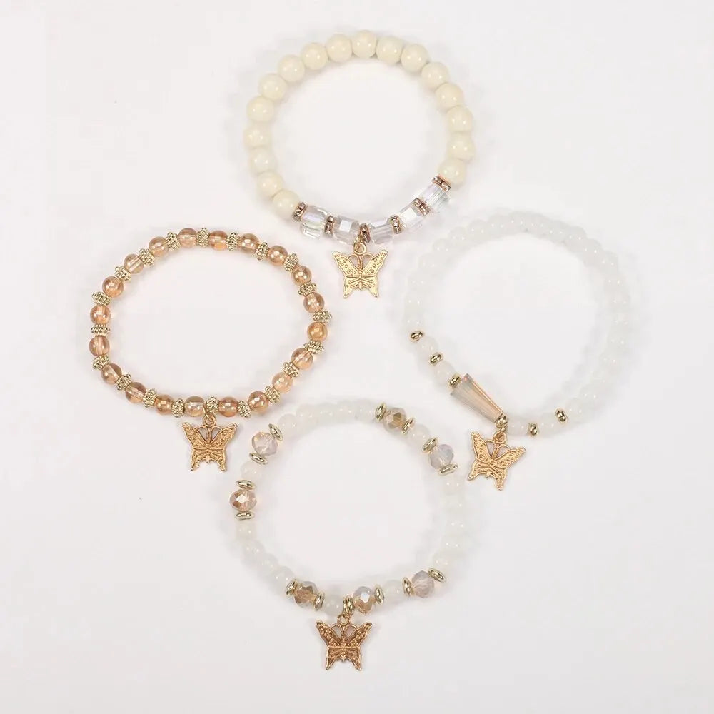 Bohemian Multi-Layer Butterfly Pendant Bracelet Hand-Beaded 4 Pieces/Set Artificial Crystal Glass Diamond Bracelet