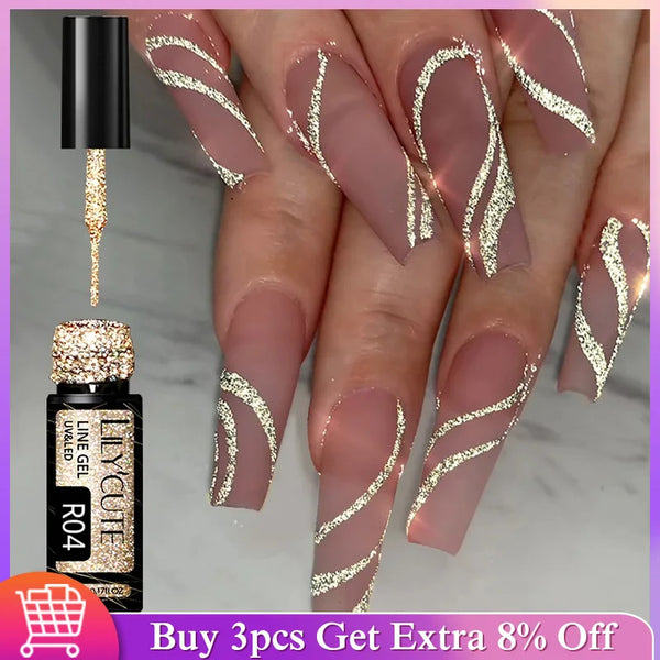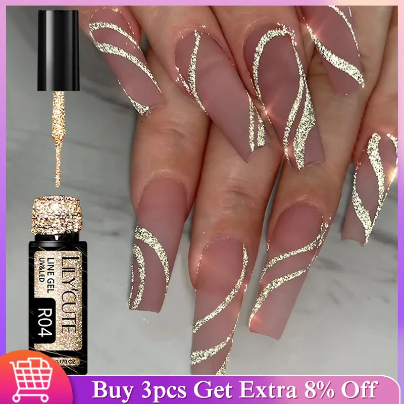 Elevate your nail art game with the LILYCUTE 5ML Reflective Glitter Liner Gel Polish. This dazzling champagne-colored gel polish is designed to add a touch of sparkle and sophistication to your nails. Its fine glitter particles create stunning reflective lines, making it perfect for detailed designs and French nails. The semi-permanent formula ensures long-lasting wear and resistance to chipping, while its easy application process requires curing under a UV or LED lamp. Ideal for professional nail artists and enthusiasts alike, this glitter liner gel polish offers a glamorous finish that shines with every movement. Whether you're crafting intricate nail art or adding a sparkling accent to your manicure, LILYCUTE delivers precision and brilliance in every stroke.